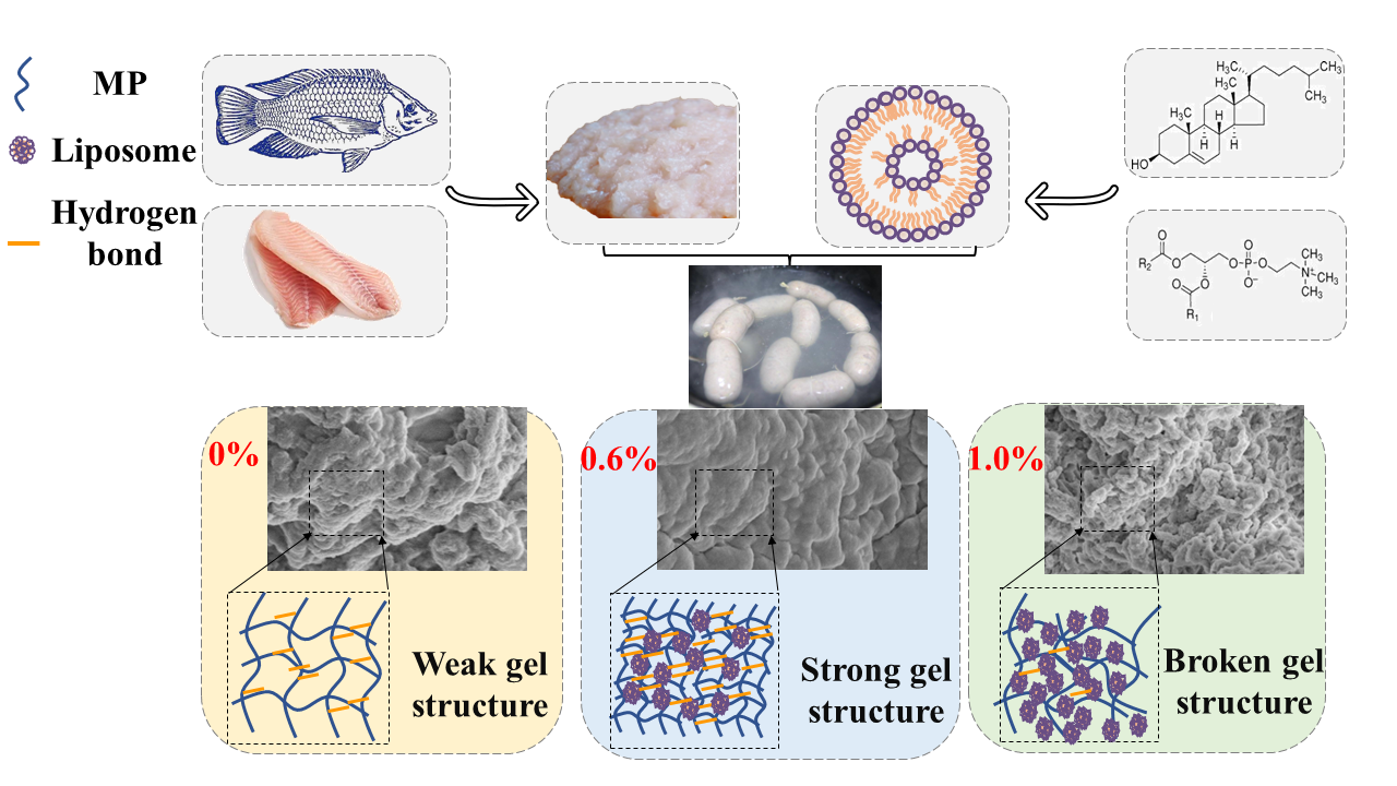自日本核污水排海后,罗非鱼等大规模养殖淡水鱼类越来越受到重视。目前海南省罗非鱼生产量全国排第二位。如何将罗非鱼加工成安全,营养,方便的食品,成为海南水产品加工行业急需解决的问题。与海水鱼类相比,罗非鱼缺乏DHA、EPA、磷脂、部分维生素和矿物质等营养成分,影响其产品的价值。该团队为了解决上述问题,开发出能负载营养成分的脂质体载体,对脂质体在罗非鱼糜凝胶形成过程中与肌原纤维蛋白相互作用的机制进行了深入研究。